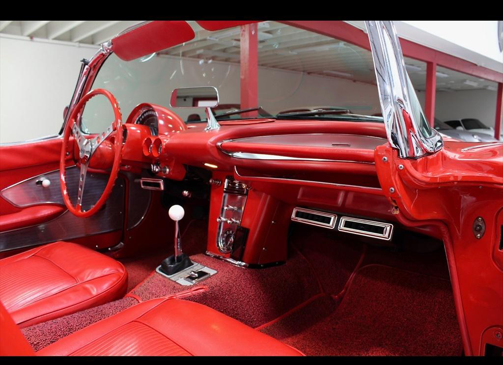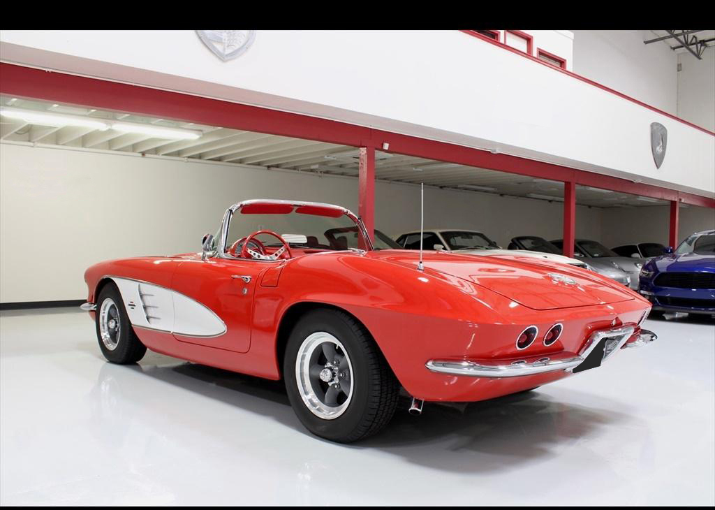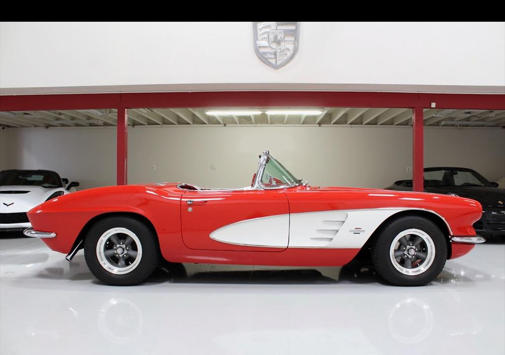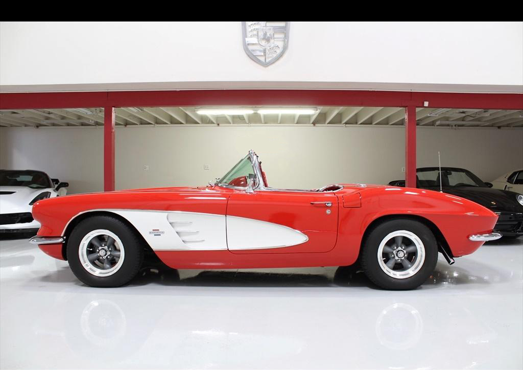 1961 Chevrolet Corvette in Roman Red over Red Interior. Equipped with a 327ci Engine mated to a Muncie 4-Speed Manual Transmission. Just 5k miles since restoration and rebuilt engine. Fresh paint job within the last 3 years. Brand new convertible top just installed. Vintage Air A/C blows cold. SSBC Disc brakes in the front. Aluminum radiator. Hurst shifter. AM/FM Radio, 6-Disc CD changer, and Sirius XM Radio. Two sets of wheels included; American Racing 15" wheels and stock wheels with hubcaps and white wall tires. This incredible Corvette runs and drives as good as it looks.