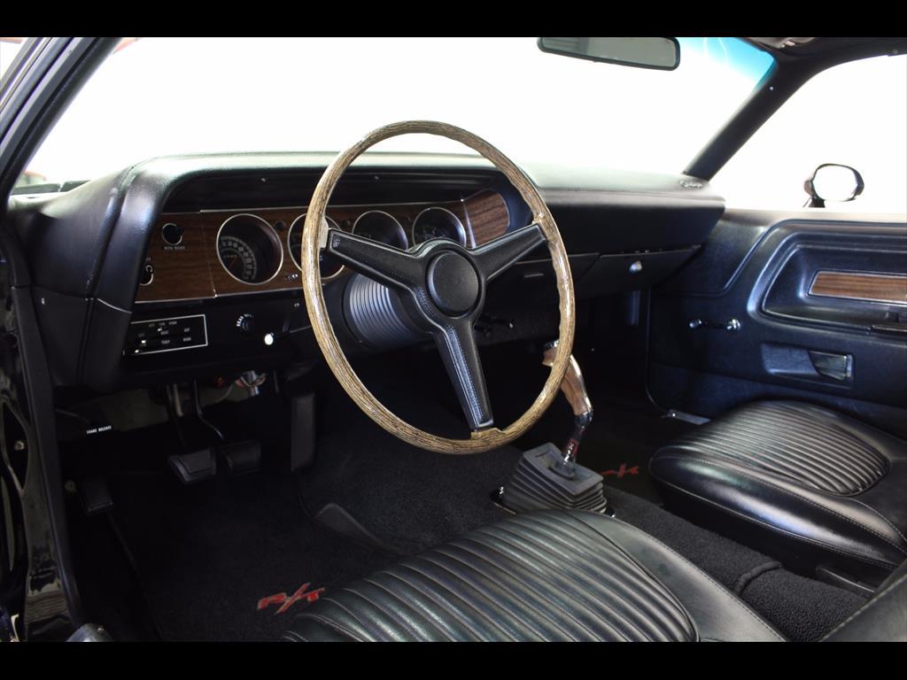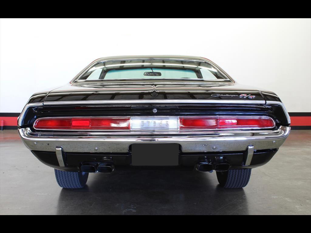 1970 Dodge Challenger R/T in Black Velvet over Black Interior. Equipped with a 440ci V8 Engine mated to a 4-Speed Manual Transmission. A beautiful restoration from the ground up, this car looks better than the day it rolled off of the showroom floor. Show quality body and paint. This is a rare and desirable car, a true U code 440 Magnum R/T that came from the factory Black on Black with 4-Speed transmission and Dana 60 rear axle with 3:54 gears. Estimated to be 1 of 25 such cars to be produced. It is also presumed to be 1 of 100 Black R/T's produced. This special car was featured in an official Dodge commercial, to promote the new Hemi Challenger when it was released in 2012, this is the reasoning for the 426 Hemi emblems on the hood, as in the commercial the car transforms from a 1970 Hemi Challenger into the new Hemi Challenger. Hurst pistol grip shifter, High grade interior with black vinyl bucket seats, Track Pack axle package, Rallye Instrument cluster, Power brakes, Center console with woodgrain, Sport hood, Dual exhaust, Tachometer, and 8-track AM radio.