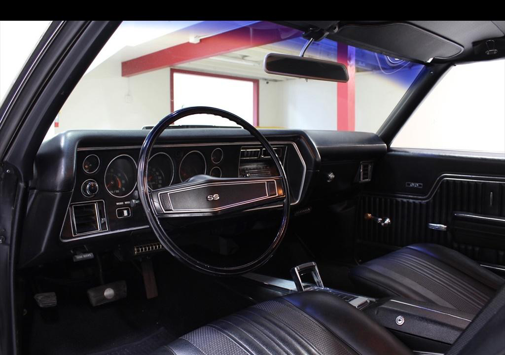 1970 Chevrolet Chevelle Super Sport in Tuxedo Black over Black Interior. Equipped with a 454ci V8 Engine mated to a Turbo 400 Automatic Transmission. This beautiful SS has been repainted once in it's original color. The car is believed to be an original LS5 car, but is now powered by a Warranty replacement CE block. Mileage on the odometer is believed to be original to the car. This was a highly optioned car with Factory Air Conditioning, Power steering, and Power disc brakes. 12 Bolt rear end with posi. AM/FM Radio with cassette player. Functional cowl Induction hood. Hood pins. Super Sport wheels wrapped in period correct Firestone tires. This SS is solid all around and drives incredible.